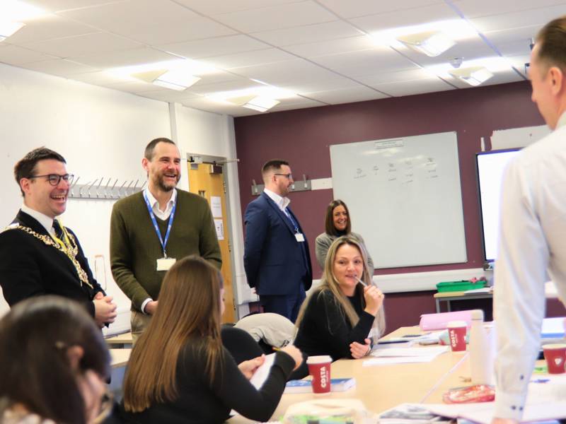 The Lord Mayor witnessed lessons in AAT Accounting, Automotive and Hairdressing, chatting to students and staff about their apprenticeship programmes.